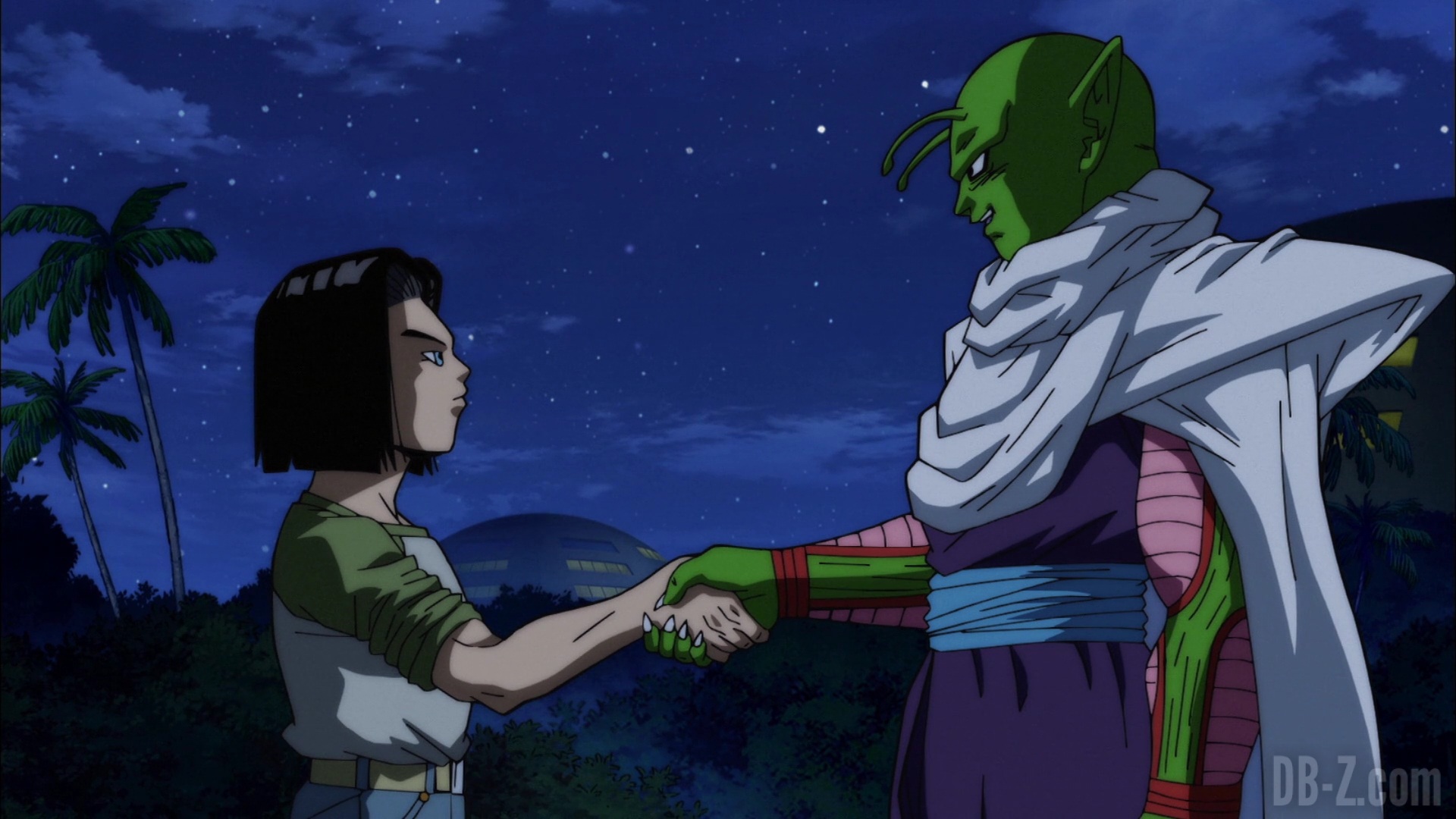 Sur l’île de C-17, ce dernier et C-18 se revoient après une longue absence. Après un échange tendu, mais convivial, Trunks, Goten, et même Maron, acceptent de rester sur l’île pour la garder pendant que C-17 et C-18 partent au tournoi. Pendant ce temps, des braconniers surveillaient la scène… C-17 arrive à Capsule Corp. Il retrouve Piccolo, et après quelques secondes de tension, ils se saluent amicalement.
