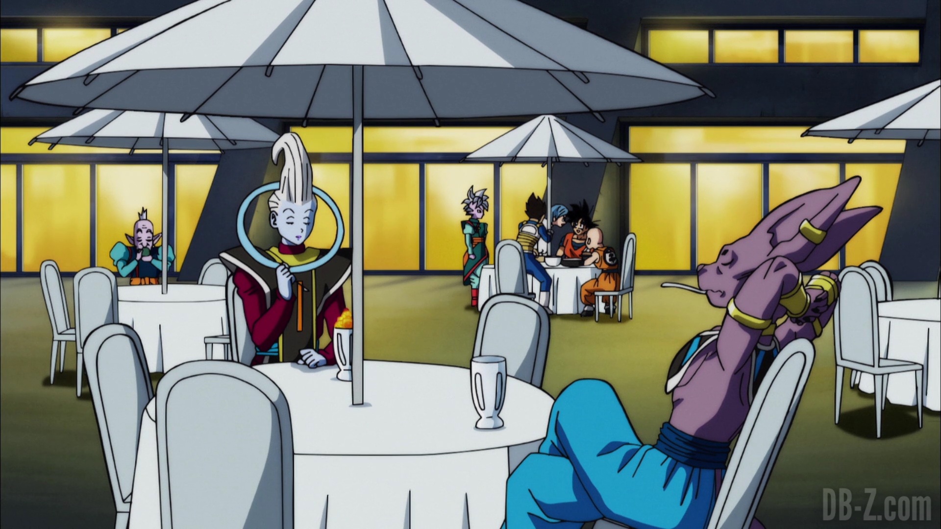 Goku est de retour à Capsule Corporation. Il explique aux autres comment ça s’est passé avec Freezer. Il explique que ça s’est bien passé, et avoue qu’en échange de son aide, il a promis de ressusciter Freezer si l’Univers 7 gagne. Tout le monde est étonné, mais Whis leur dit que ça vaut largement la destruction de l’Univers. Pendant ce temps, Quitela et Sidra discutent… Quitela fait croire à Sidra que l’Univers 7 complote pour s’attaquer à l’Univers 9 de Sidra… Quitela propose donc de lancer une embuscade sur Freezer. Sauf que si les Rois Zeno apprennent ça, ils seront tués. Par conséquent Quitela propose à Sidra d’envoyer des pions pour faire le sale travaille.