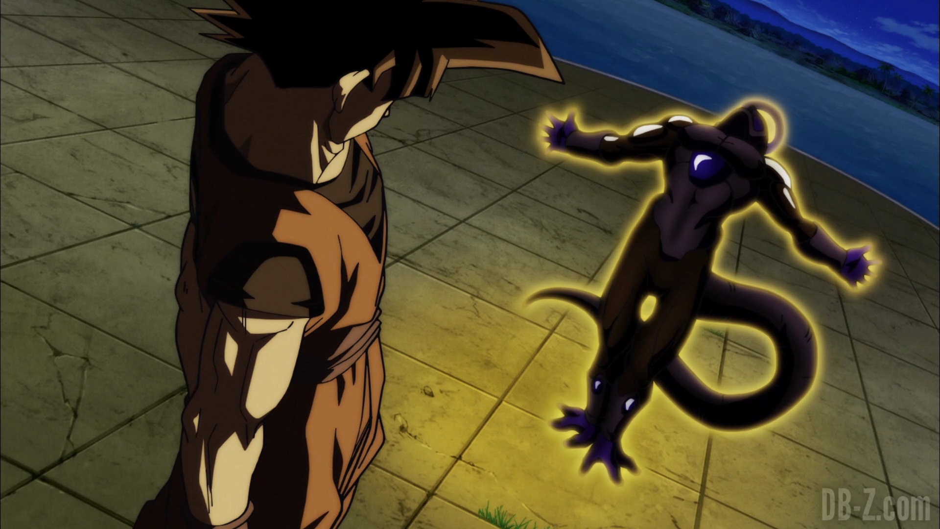 Du côté de Goku, chez Baba la voyante, Freezer arrive. de leur côté aussi, les salutations sont tendus, mais ils sont fins prêts à partir. Sauf que dehors, une armée d’assassins les attend ! Goku dit qu’ils n’ont absolument pas le temps car ils sont déjà très en retard, et un retard = une disqualification = la destruction de leur Univers. Mais Freezer s’en fiche : il se transforme en Golden Freezer et s’apprête à passer à l’attaque !
