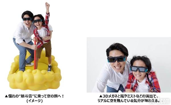L’attraction s’appelle « ZENKAI KINTOUN » (=l’incroyable nuage magique), et elle ouvrira cet été à partir du 15 juillet 2017. En grimpant sur le nuage, le J-World vous assure que vous aurez l’occasion de réaliser votre propre « expérience de vol ». Dans les faits, il s’agira de montagnes russes en réalité virtuelle : vous serez dans une salle, avec des lunettes 3D, et où tout votre champ de vision vous immergera dans le monde de Dragon Ball… Mais ce n’est pas tout !