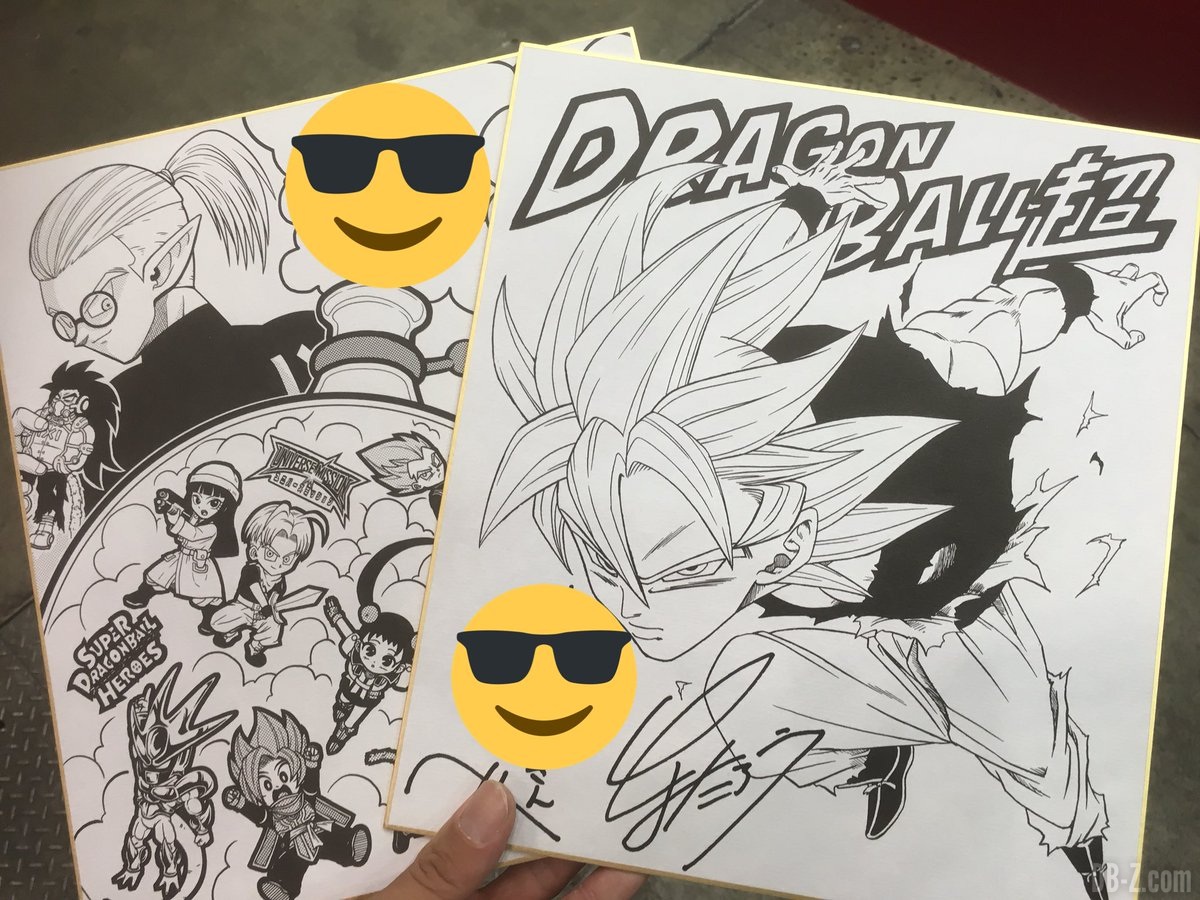 Côté Dragon Ball, les invités à retenir sont Toyotaro (mangaka de Dragon Ball Super), Yoshitaka Nagayama (mangaka de Super Dragon Ball Heroes). Ils se sont livrés à une séance de dédicaces, où les deux artistes ont mis à disposition des shikishi pour l’occasion. Il s’agit de cartons illustrés, et qui permettent habituellement de recueillir des voeux où autographes.