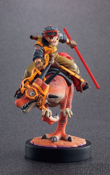 Cette illustration de Goku chevauchant un dinosaure apparaît sur la couverture du livre, qui se lit de droite à gauche. Les couleurs dominantes virent au rouge, mais il existe également une version de cette illustration avec des tons verts. D’ailleurs, elle avait même été déclinée en deux couleurs dans la gamme de figurine Dragon Ball Desktop Real McCoy – Goku sur son dinosaure.
