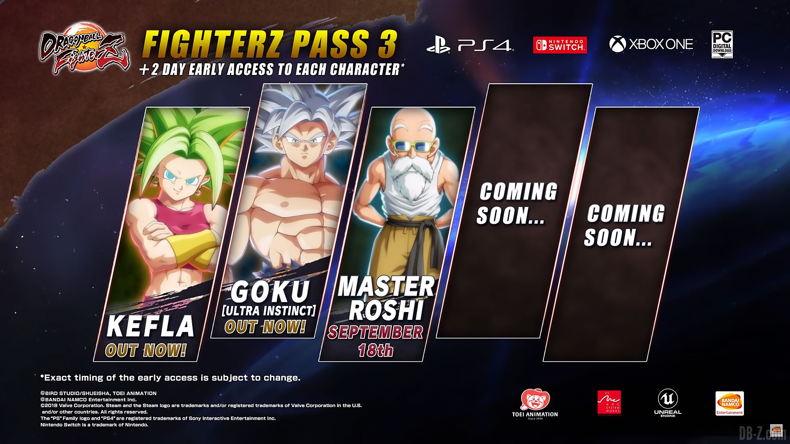 Notez qu’il n’y a aucun contenu sur Dragon Ball FighterZ, ni sur Dragon Ball Z Kakarot. Côté DB FighterZ, après la sortie du DLC de Kame Sennin, on attend toujours les 2 derniers personnages du FighterZ Pass 3. Et côté DBZ Kakarot, on rappelle que le DLC #2 avec Golden Freezer vient à peine de sortir ce 17 novembre. Prochaine étape : nous attendons l’annonce du prochain DLC, dont on ne sait toujours rien, malgré quelques rumeurs :